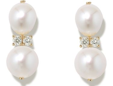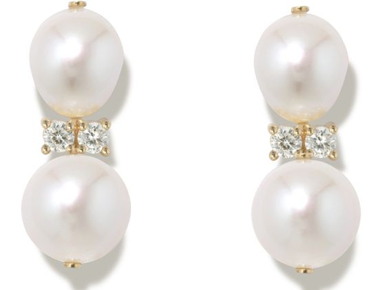 Reveal completed works's bead and pearl detail earrings, set with diamonds and finished in gold. These earrings offer a refined touch, blending luminous accents with a modern silhouette for a statement that elevates any ensemble.