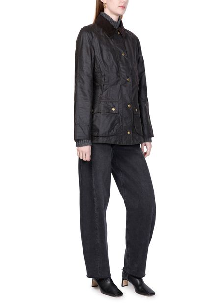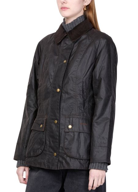 Barbour's Beadnell jacket is a stylish outerwear staple with a slim fit and classic collar. Featuring long sleeves and a concealed zipper and snap fastening for added warmth and convenience. Side pockets offer storage for essentials, while the logo on the side adds a touch of branding. Finished with a contrasting lining for a modern twist.