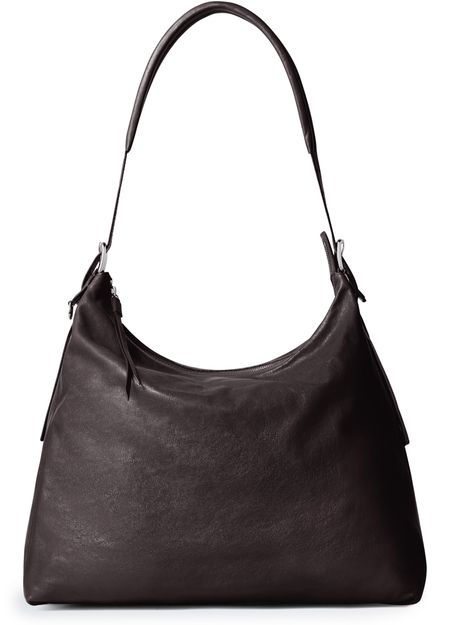 Unveil lemaire's belted hobo bag, a fusion of glossed leather and craftsmanship. This shoulder bag, featuring a single handle and an adjustable strap, offers gussets and a zippered closure for secure elegance. Inside, a zippered pocket enhances its functional style.