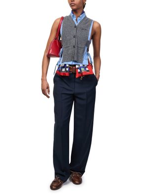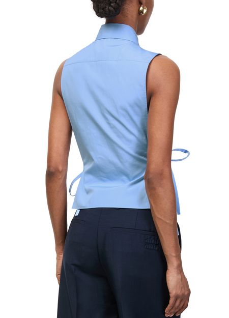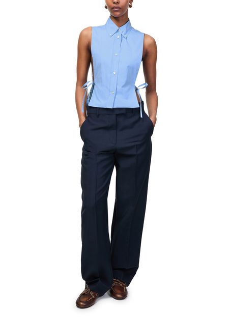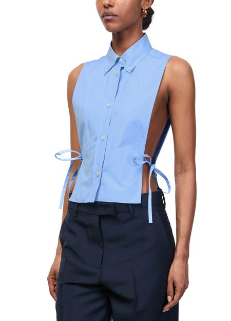 Reveal Miu Miu's bib shirt, featuring a refined front buttoned closure and an embroidered "Miu Miu" logo for a signature touch. The crisp silhouette and front logo detail make this top a versatile statement piece, perfect for elevating both casual and sophisticated ensembles.