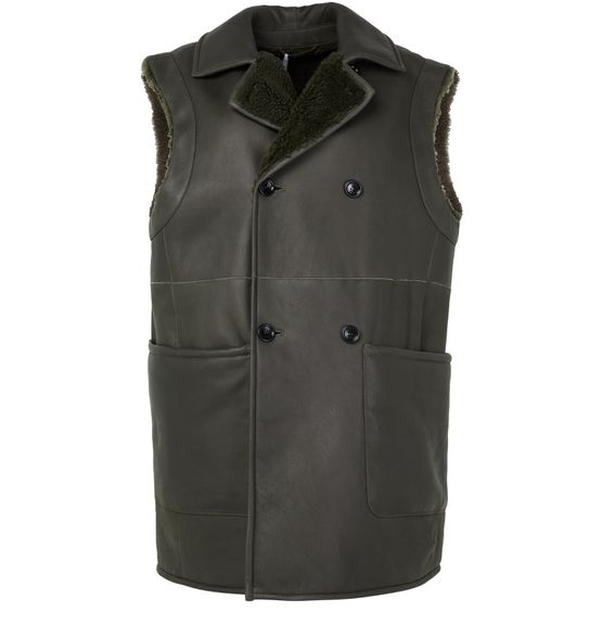 $116,150 /€3,100$232,300-50% - 描述 : Smooth leather, bi-material, warm fabric, knee length, collar, notched collar, sleeveless, large front pocket, lined, double-breasted.