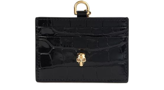 卡片夹的正面低调地嵌入金色字母徽标,搭配 Alexander McQueen 链带,整体洋溢着优雅精致的气质。
