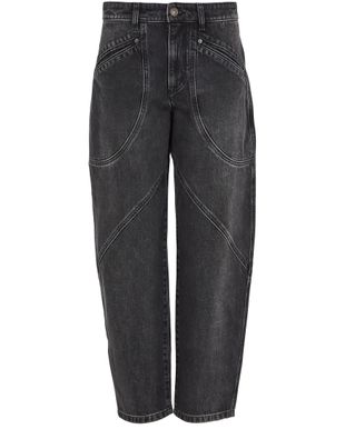 Introducing Isabel Marant's Catarina jeans, designed for those who embrace effortless style. Crafted from faded denim, these casual pants feature a chic ankle length and a buttoned zipper closure. With back patch and side welt pockets, plus visible stitching, they offer both functionality and flair.
