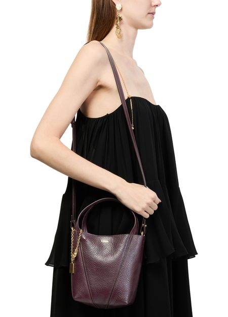 Reveal Chloe's Spin grained leather tote bag, crafted from supple grained leather and adorned with gold-tone charms on a delicate chain. The signature saddle stitch and gold logo add refined detail, while the adjustable thin strap and snap-button fastening offer both style and versatility for modern sophistication.