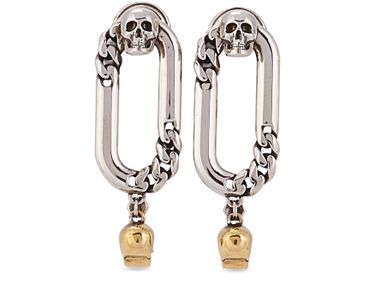 饰有璀璨水晶的搭扣及双骷髅吊坠为这款 Alexander McQueen 品牌耳环平添一丝朋克气息,每处细节无不展现精致的设计风格。