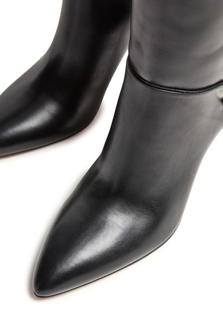 • 描述 : Boots, smooth leather, stiletto heel, medium heel, closed, pointed toe, leather outer sole, buckled strap.