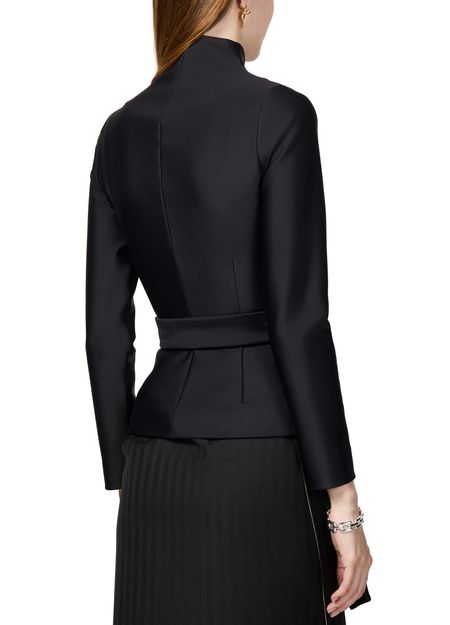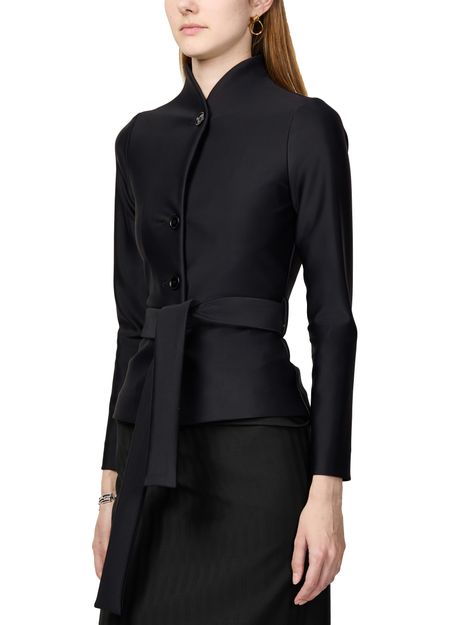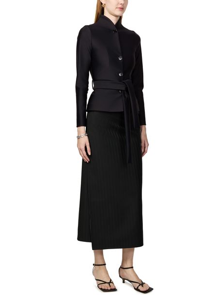 Embrace Marie Adam Leenaerdt Fitted Jacket Uniform with its high neck and long sleeves, offering a chic silhouette. The front buttoned closure and bow fastening add a touch of elegance. Perfect for casual outings, this versatile jacket blends seamlessly with your wardrobe.
