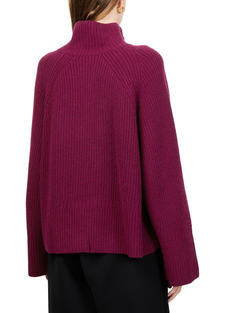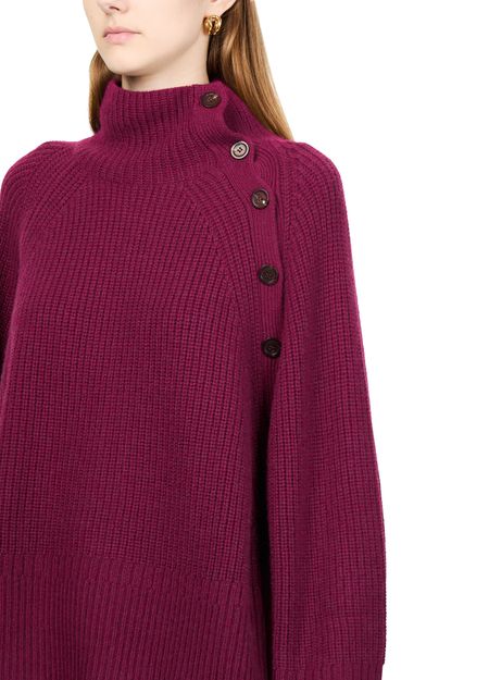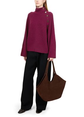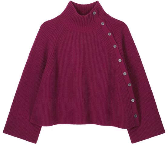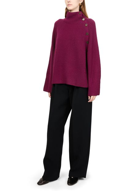 Embrace Eric Bompard's ribbed knitwear with a funnel neck and raglan sleeves that showcase its long-sleeved elegance. The shoulder buttoned closure and loose fit provide effortless comfort and style, perfect for elevating any casual ensemble.