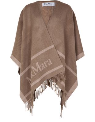 Introducing the Max Mara Hilde cape, a three-quarter-sleeved marvel adorned with fringe details. This stylish piece is accentuated by a front logo, effortlessly blending elegance and modernity. Experience its versatility, perfect for both casual outings and formal events, making it a must-have addition to your wardrobe.