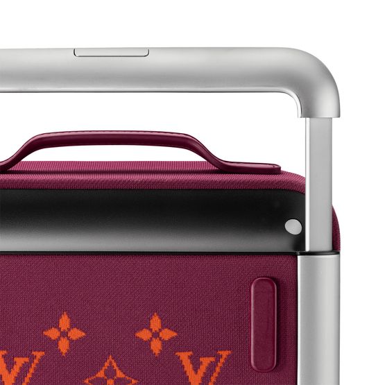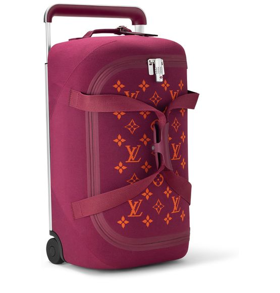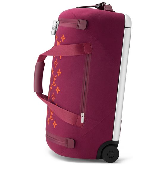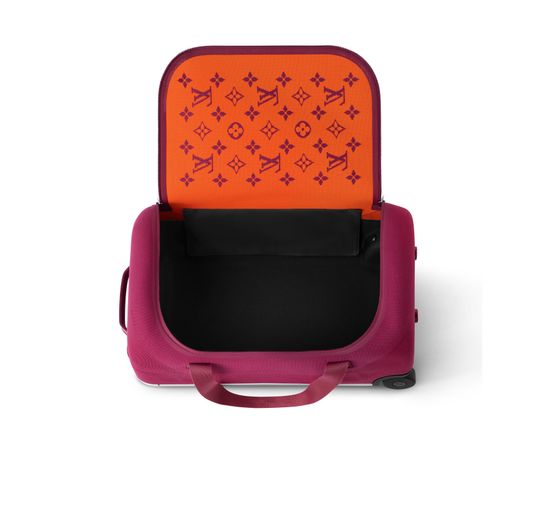 Made from thermoformed 3D knit in fuchsia with an orange Monogram motif in double-sided Jacquard knit, the lightweight Horizon Soft Duffle 55 pops with color. This rolling duffle bag has two wheels and a surprisingly voluminous interior thanks to its external cane. Developed with Marc Newson, widely acknowledged as one of the most influential industrial designers of his generation, it boasts an ergonomic TSA padlock...