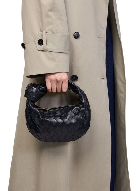 보테가 베네타(Bottega Venetta)를 상징하는 스타일을 선보이는 미니 조디(Mini Jodie) 숄더백은 페미닌한 아웃핏을 섬세하게 완성해줍니다. 리본으로 묶은 넓은 손목 디테일과 하우스를 상징하는 직각 위빙을 사용한 디자인입니다.