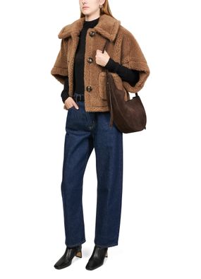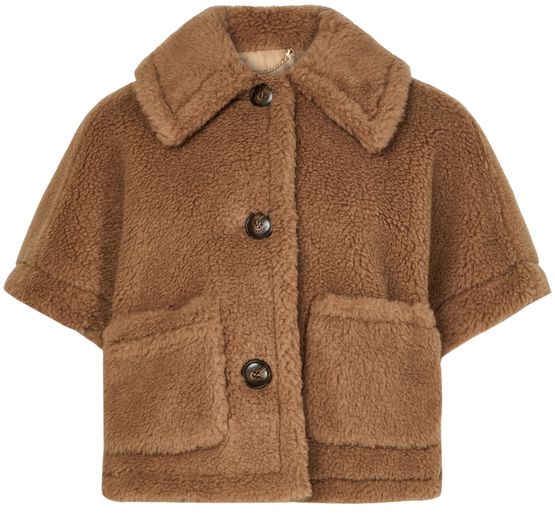 Introducing Max Mara's Newterzo Teddy cape, a perfect blend of style and comfort. With its button fastening and fur detail, this crop knitwear showcases a boxy fit and dropped sleeves. The texture and short-sleeved design add a modern touch, making it a versatile piece for any wardrobe.