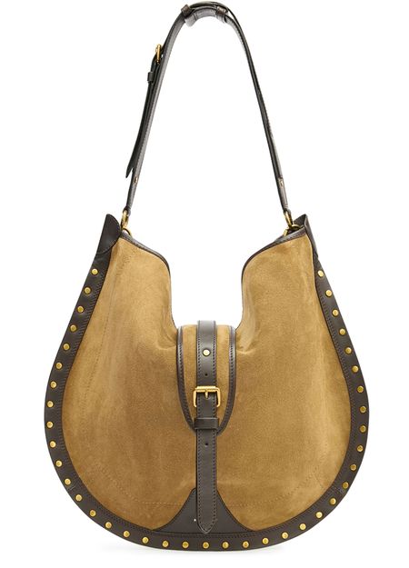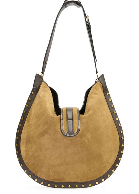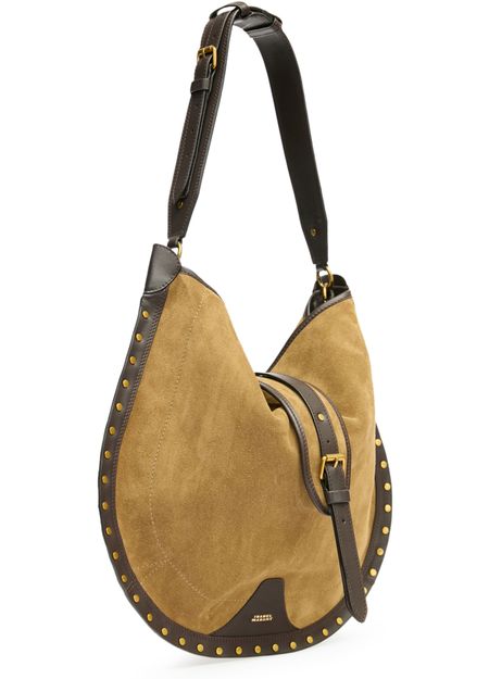 Reveal Isabel Marant's Oskan Soft hobo bag, crafted from supple suede with a single handle and wide strap for versatile wear. Studded accents, visible topstitching, and a front logo add signature flair, while gold-finish hardware elevates this crossbody bag's modern sophistication.