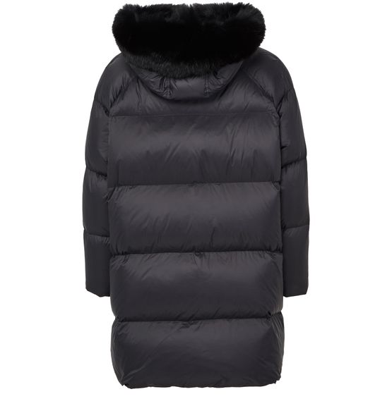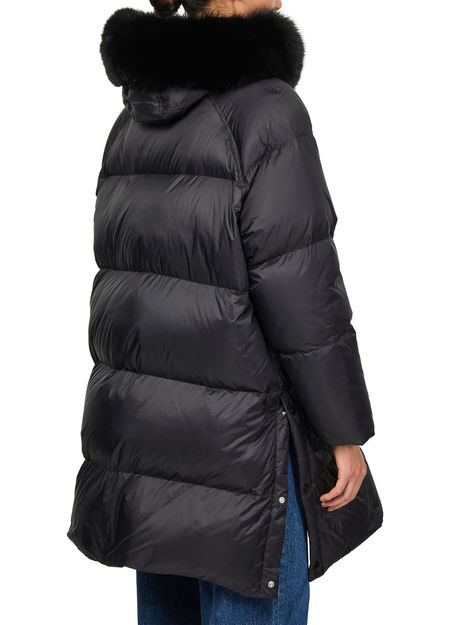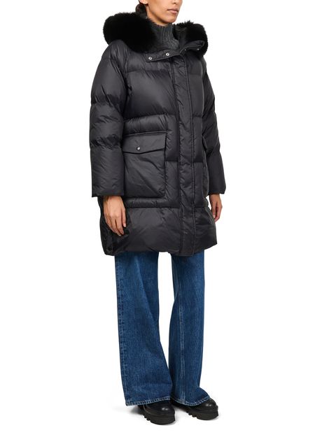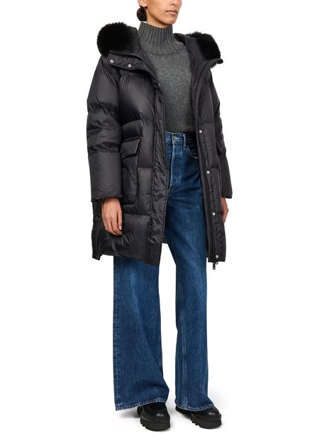 Reveal Yves Salomon's puffer jacket with a fox fur hood. This oversized, knee-length piece features a padded texture and long sleeves, offering both style and warmth. With its buttoned and concealed zipper closure and flap pockets, it's a versatile addition to any wardrobe.