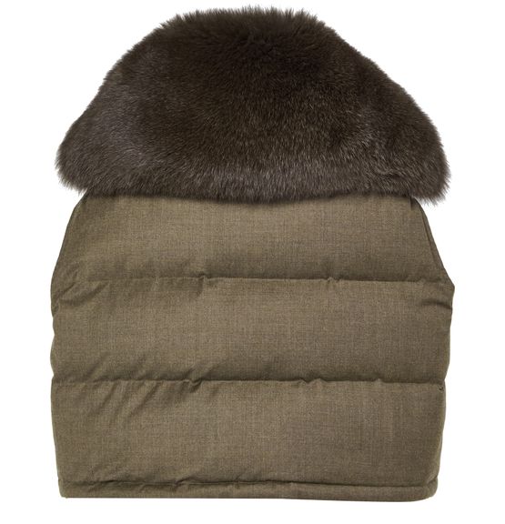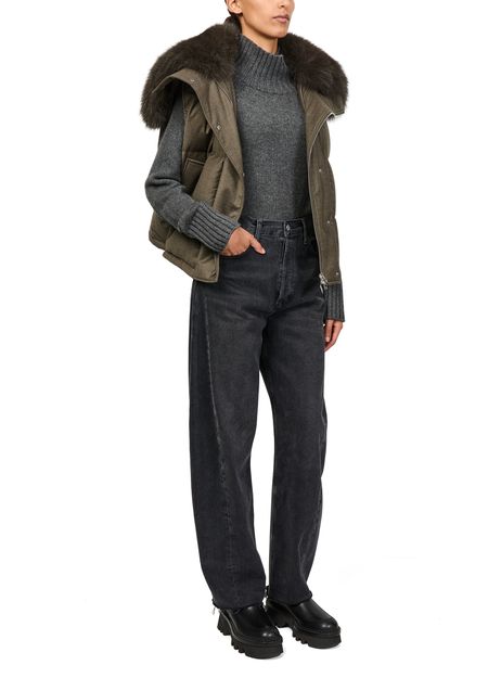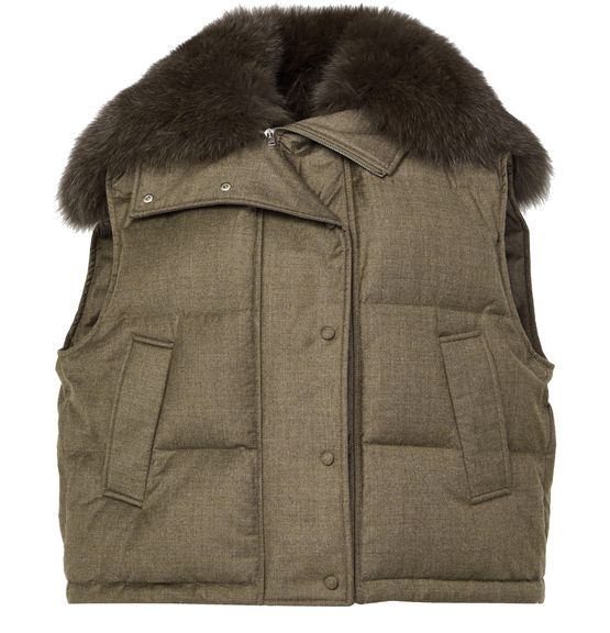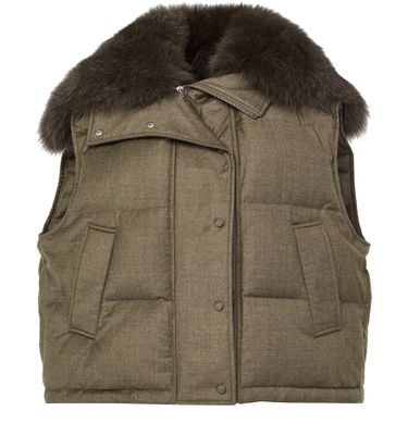 Unveil Yves Salomon's short fox fur gilet, a stunning blend of opulence and modern flair. This sleeveless piece showcases a luxurious fur detail, complemented by an oversized fit and a hooded neckline. The concealed zipper and snap fastening ensure practicality, while the padded texture offers warmth and comfort.