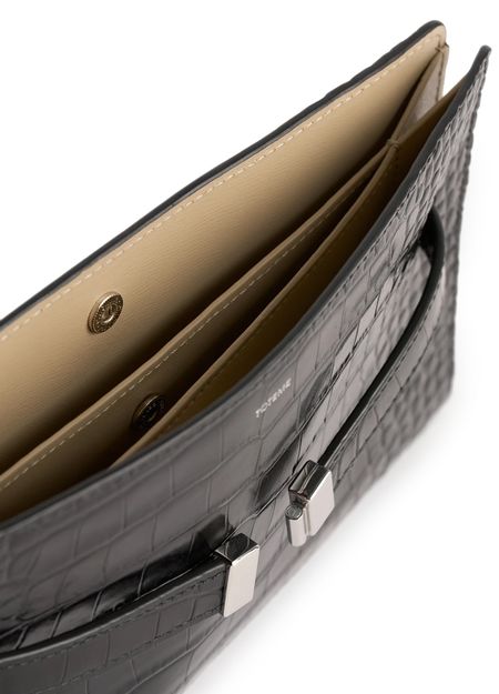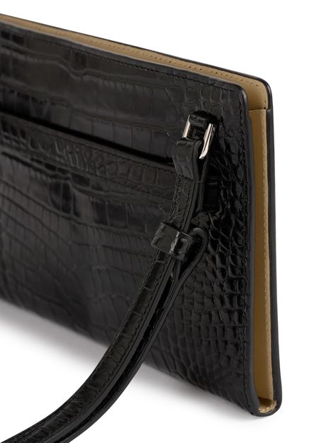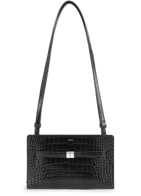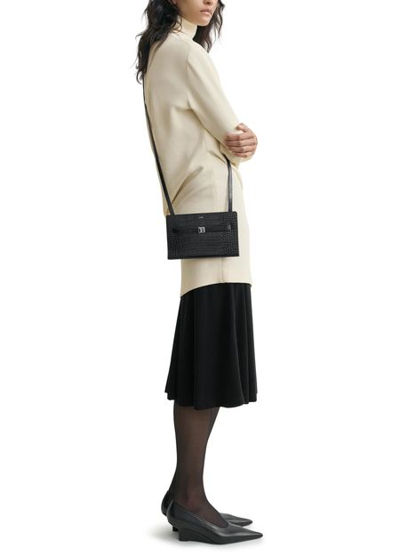 Shoulder bag with crocodile-embossed belt strap