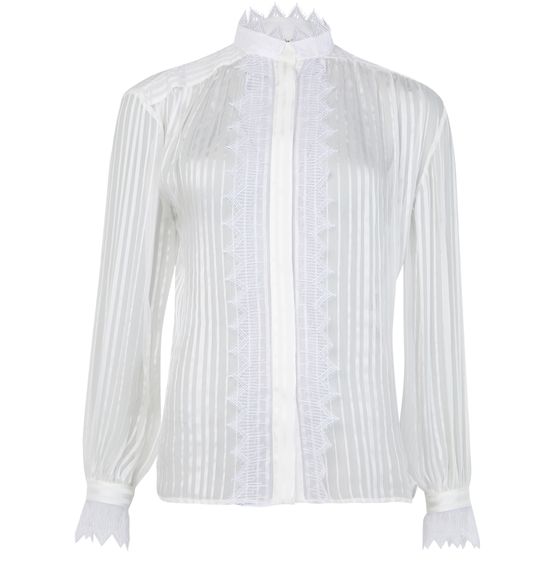 • 描述 : Striped print, high-neck, cuffed sleeves, long-sleeved, button fastening, embroidered details.