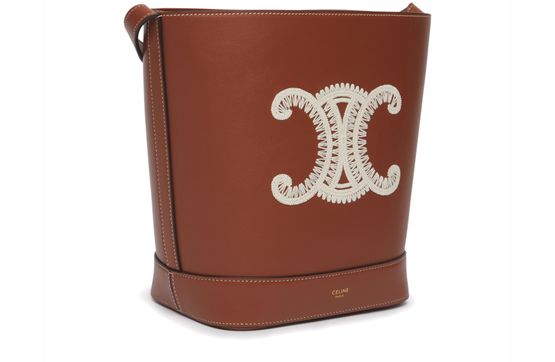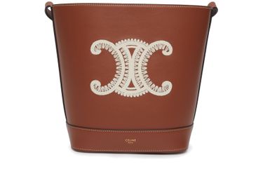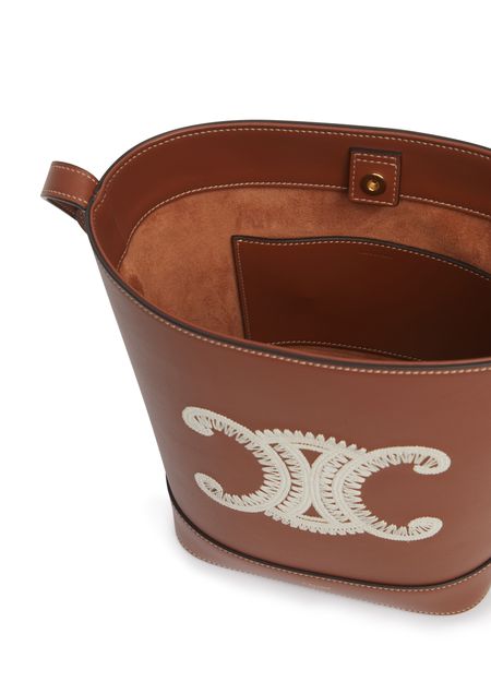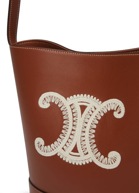 Bucket Triomphe小号光滑牛皮革Triomphe刺绣水桶包