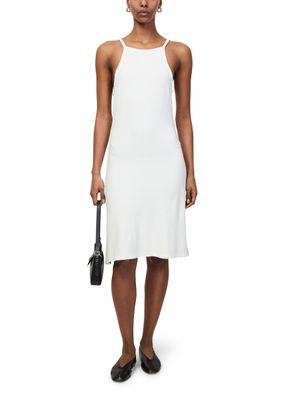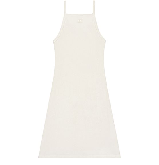 Reveal Courreges's Spongy Heritage dress, a sleeveless silhouette with bare shoulders and delicate shoulder straps. The embroidered logo adds a refined touch, while the soft texture ensures comfort. This versatile piece transitions effortlessly from day to evening, making it a standout for any occasion.