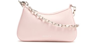 Reveal Alexander McQueen's T-Bar mini pouch, crafted from exquisite grained leather. This stylish shoulder bag boasts a chain strap and a zipper closure, offering both elegance and practicality. Its front logo in silver letters and visible topstitching enhance its chic appeal, while interior slots for cards add functional sophistication.