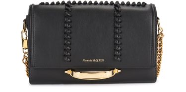 这款 The Story 单肩包在不经意中流露出质感细节。 Alexander McQueen 以金色金属提手和翻盖的绳结装饰为其增添了一抹精致。