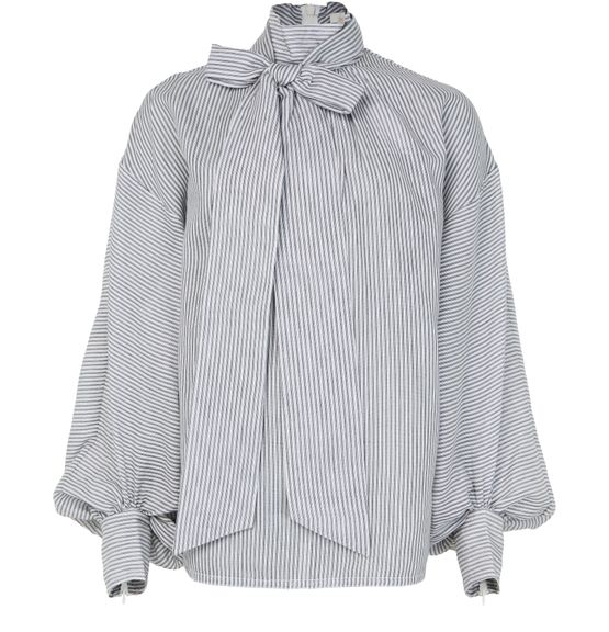Reimagine Zimmermann's Hypnotic striped blouse. A high-neck design paired with long dolman sleeves and a bow fastening creates an elegant silhouette. The striped print adds a modern touch, making it perfect for versatile styling from casual to chic occasions.
