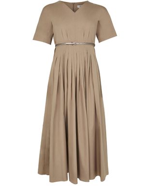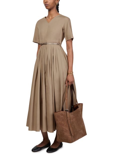 Reveal S Max Mara's Willy maxi dress. This flared dress with its elegant V-neck and short sleeves flows beautifully to a midi length. The back zipper closure ensures a seamless finish, perfect for any occasion.