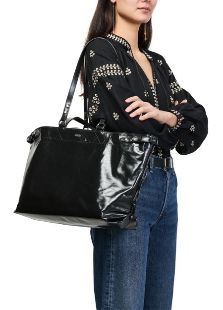 - 描述 : Shopper / tote bag, shoulder bag, double handles, leather handle, carry handle, thin strap, front logo, glossed leather, visible topstitching, padded texture.