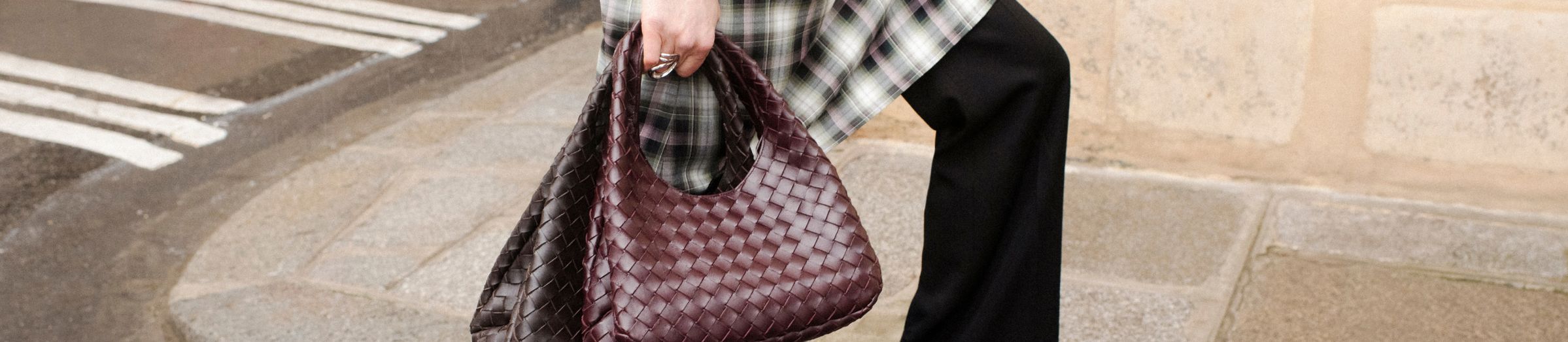 Bucket bag with miniature checks