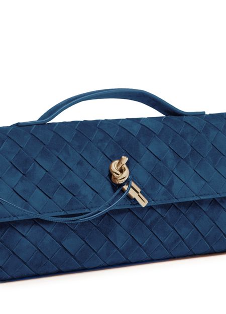 Reveal Bottega Veneta's Andiamo long clutch, showcasing the iconic Intrecciato weaving technique. The single handle and twist lock closure offer refined practicality, while visible topstitching and a gold finish add a sophisticated edge. This piece seamlessly blends signature craftsmanship with modern design.