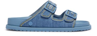 : 鞋面材质 : 牛仔 , 内衬 : 麂皮 , 带扣 : 锌合金 , 锌合金 , 外层 鞋底 : 100% EVA