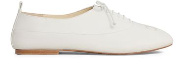 Reveal Celine's Lise perforated Triomphe richelieu in lambskin, a sophisticated choice featuring a stacked leather heel and an almond toe shape. The delicate perforated Triomphe on the toe complements the leather insole and outsole, offering timeless elegance. Extra shoelaces are included for a personalized fit.