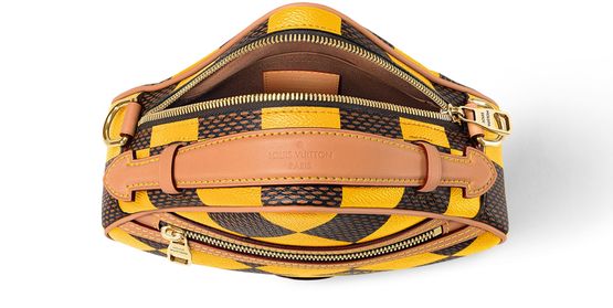 本款 Chess 邮差包承袭品牌经典 Damier 格纹,以创意总监 Pharrell Williams 打造的 Damier Pop 涂层帆布演绎别致构型。皮革饰边、加固包角和顶部手柄点睛细节,可拆卸并调节的肩带实现斜挎体验。