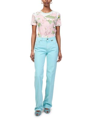 Reveal Chloé's jelly mules, designed with a modern square peep toe and a comfortable low heel. The slip-on silhouette ensures effortless wear, while the translucent finish adds a playful twist. Subtle branding on the insole completes these mules, perfect for elevating any contemporary look.