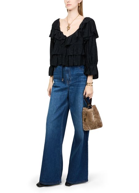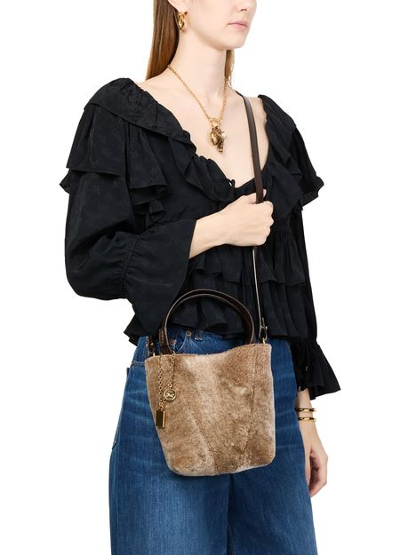 Reveal Chloé's Spin tote bag, a masterpiece of elegance and functionality. Crafted from grained leather with a very soft hand feeling, it features gold-tone charms and a logo in gold letters. The adjustable, detachable strap and magnetic closure enhance its versatility, while the large interior compartment offers ample space.