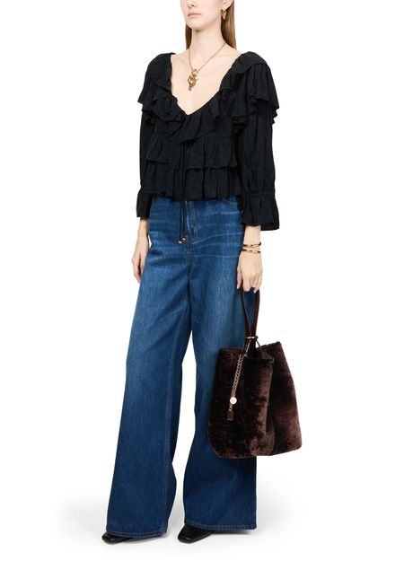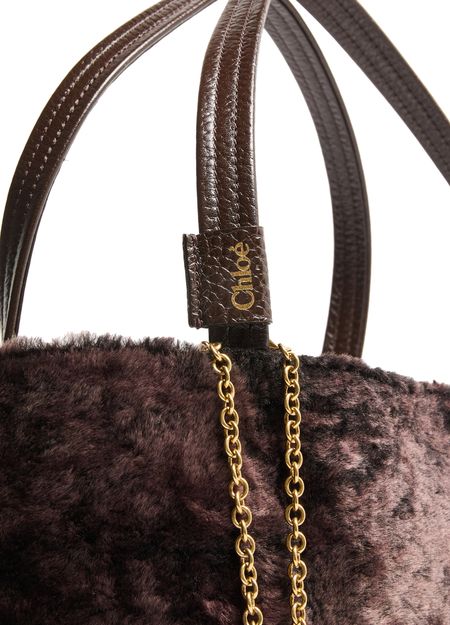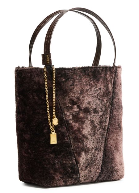 Reveal Chloé's Spin tote bag, a masterpiece of modern design. Crafted from warm fabric, it features gold-tone charms and a logo in gold letters. The double handles and large interior compartment offer both style and functionality, making it an essential accessory for any fashion-forward wardrobe.