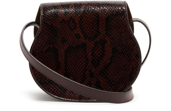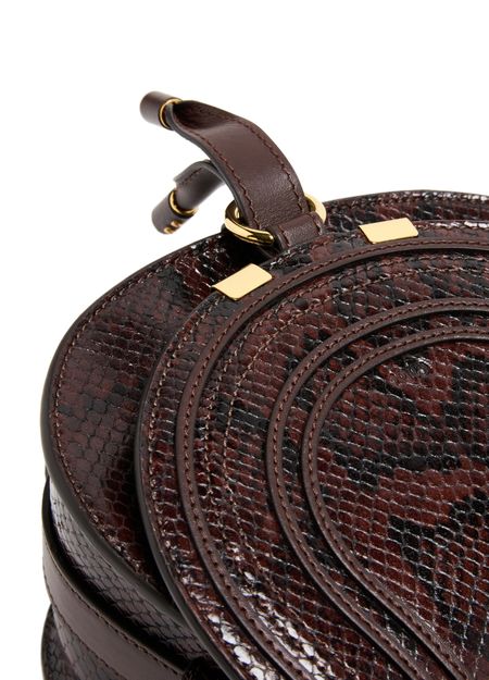 Discover Chloe's Marcie shoulder bag, a sleek accessory adorned with flap closure and visible topstitching. Featuring a front logo and gold finish, it’s perfect for crossbody or shoulder wear. This mini bag's adjustable, thin strap and single handle enhance its versatile style.