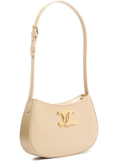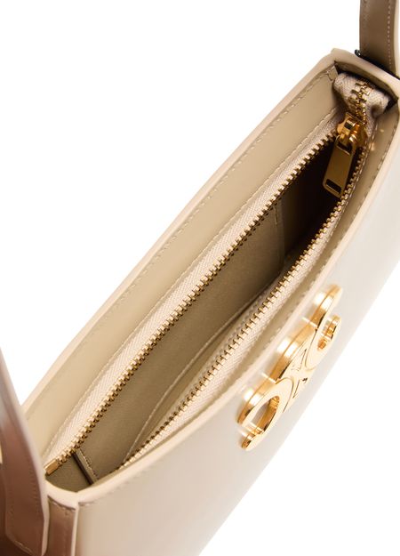 Celine's Medium Tilly bag in shiny calfskin is a luxurious companion, designed for effortless elegance. With a zipped closure and one main compartment, it offers practicality without sacrificing style. The adjustable strap allows for versatile shoulder carry, while the lambskin lining and gold finishing elevate its sophisticated allure, perfect for any occasion.