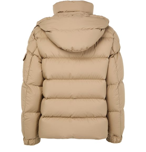 Unveil Moncler's hooded puffer jacket, a modern masterpiece that combines regular fit and short length for a sleek silhouette. With button fastening, side pockets, and a padded texture, this long-sleeved jacket is perfect for versatile styling. The hood and high neck offer added warmth and style.