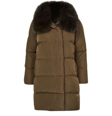 Reveal Yves Salomon's puffer jacket with a fox fur collar. This oversized, long silhouette offers plush comfort with its padded texture. Featuring a concealed closure and practical side pockets, it blends fur details with functionality, making it a versatile choice for any setting.
