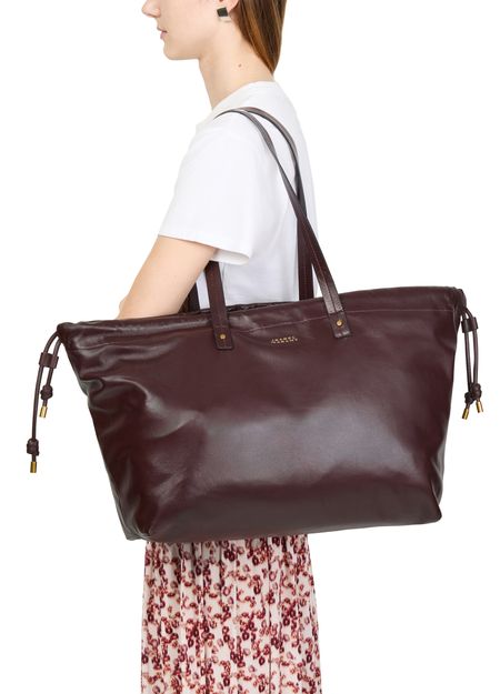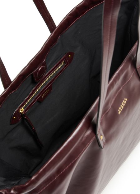 Indulge Isabel Marant's Silven tote bag, crafted in elegant smooth leather. This tote features double handles and a drawstring closure for functional elegance. The zippered interior pocket and visible topstitching highlight craftsmanship, while the front logo in gold letters and metal finish embody signature style.