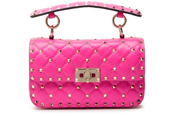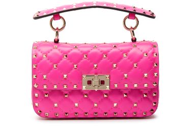 绗缝风格是这款 Valentino 签名设计 Rockstud Spike 小号手提包的魅力所在。 其在每根缝线之上都运用了品牌标志性金属细节。