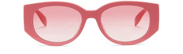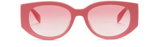 Alexander McQueen 设计的此款长方形太阳镜选用渐变色镜片,搭配具有涂鸦风格的品牌标识厚镜脚。