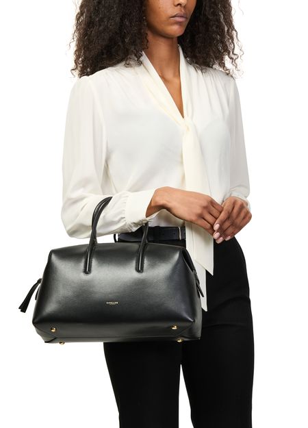 • 描述 : Shoulder bag, double handles, leather handle, front logo, suede, zipper closure.