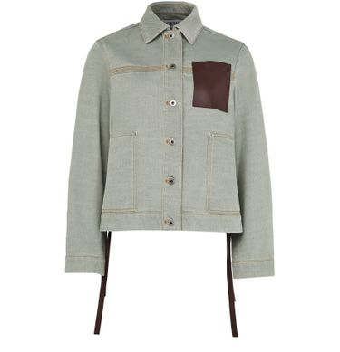 Introducing Loewe's workwear jacket in denim, a stylish fusion of regular fit and short length for a modern silhouette. Crafted with a button fastening, it boasts practical breast and patch pockets. The chest logo and topstitched edges add a touch of distinctive flair, perfect for versatile styling.
