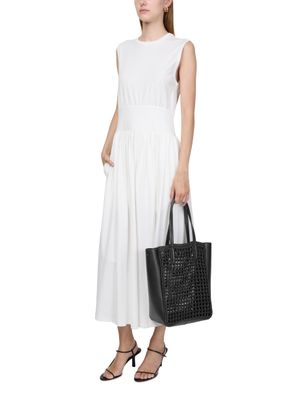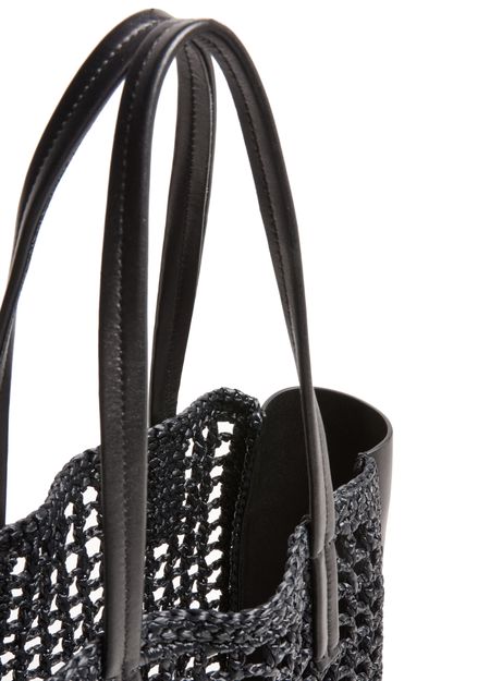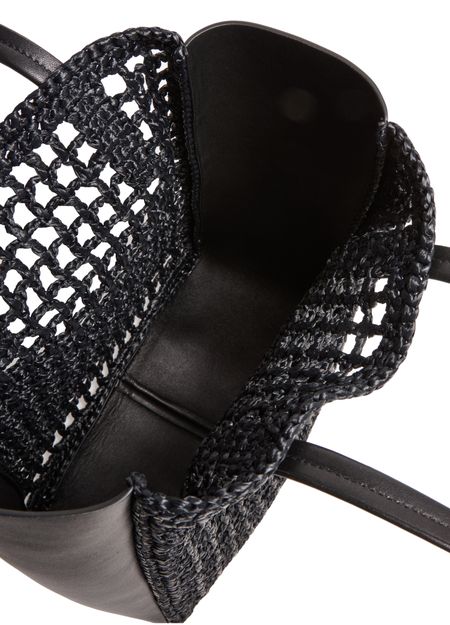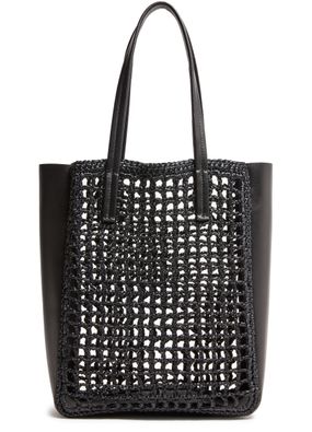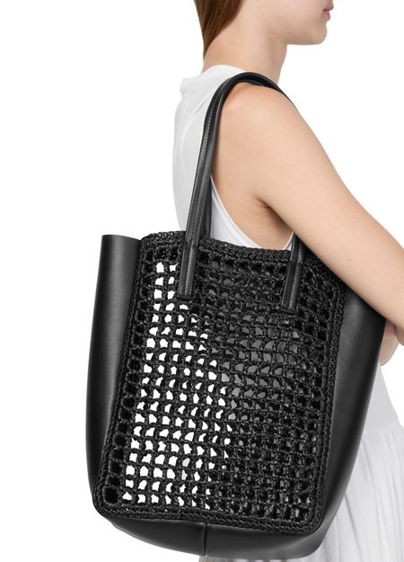 Unveil Khaite's Zoe small raffia tote bag, a testament to modern craftsmanship. Designed with an open weave and double handles, this tote combines elegant style with practical functionality, making it the perfect companion for any chic outing.